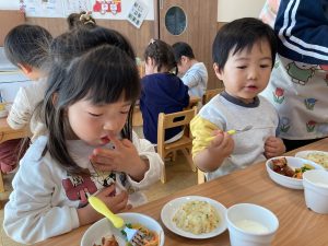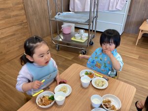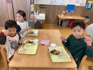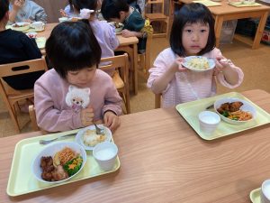 今日も給食室の先生が頑張って作ってくれました(*^^*)🍚🍴