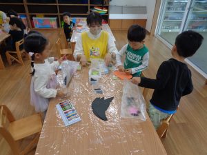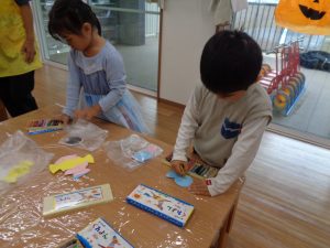 キャンディには模様を描いたり、お化けにはハロウィンっぽくお顔を描いていました🎃🎃🎃
