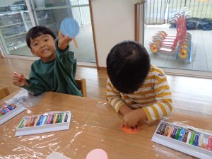 「僕はこんなの出来たよ~😊」「私のも見て~✨✨」と嬉しそうに見せ合っていました(⋈◍>◡<◍)。✧♡