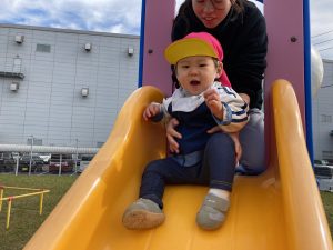 シューっと滑ると思ったよりも早かったのかビックリする様子も見られましたが、時間が許す限り何回も滑って遊びました(*^▽^*)
