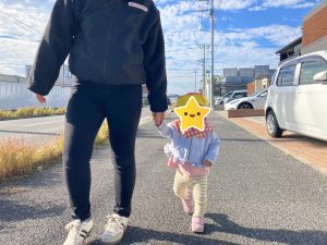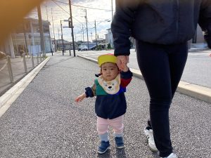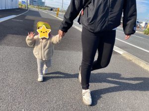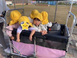 カートに乗るお友達、歩くお友達と交代しながらさざなみ公園をめざしました👍