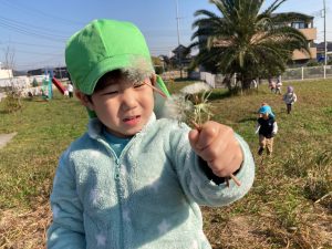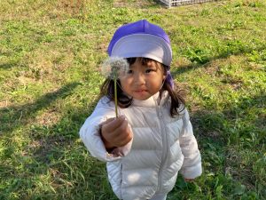 綿毛を見つけると「ふぅ~」と吹いて楽しいんでいました💕