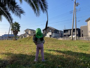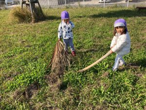 ヤシの木の落ち葉を見つけてほうき🧹にして遊んでみたり