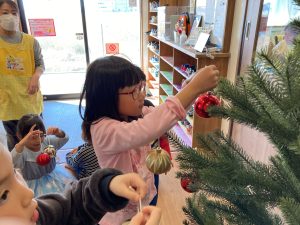 さて、今日は先週かける組・ひかり組がクリスマスツリーに飾り付けをしてくれました💕