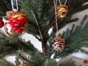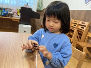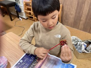 かける組も松ぼっくりにカラフルな毛糸でオーナメントを作りました🥰✨