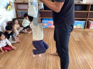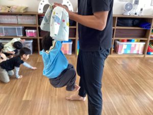 ひかり組のお兄さん・お姉さんが鉄棒している姿を見て